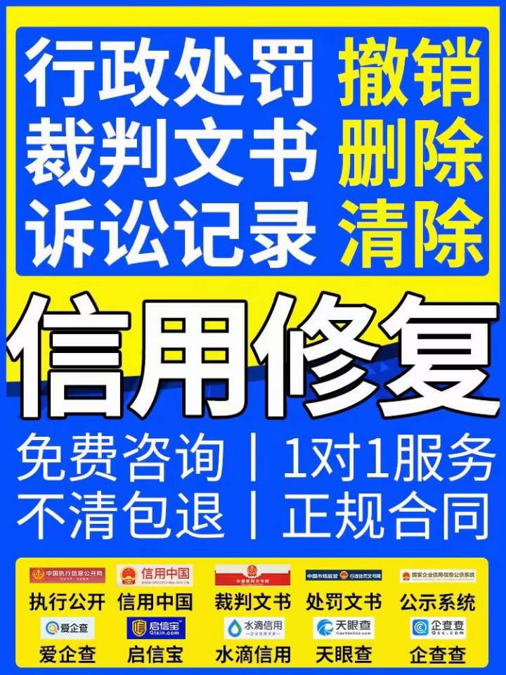 覆蓋多個平臺。司法網(wǎng)、裁判、天眼查、企查查公示網(wǎng)撤案、企業(yè)征信逾期清理、行政處罰、國家公示網(wǎng)等記錄清理,企業(yè)各種異常記錄清理。只要結(jié)案就可以處理!
